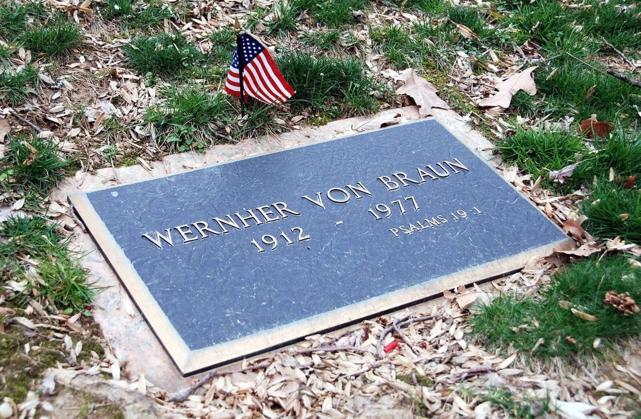 Below is the headstone of Wernher von Braun (1912 – 1977), one of NASA’s founding figures. Beneath his name is a simple inscription: Psalms 19:. If you grab your bible, this passage says: